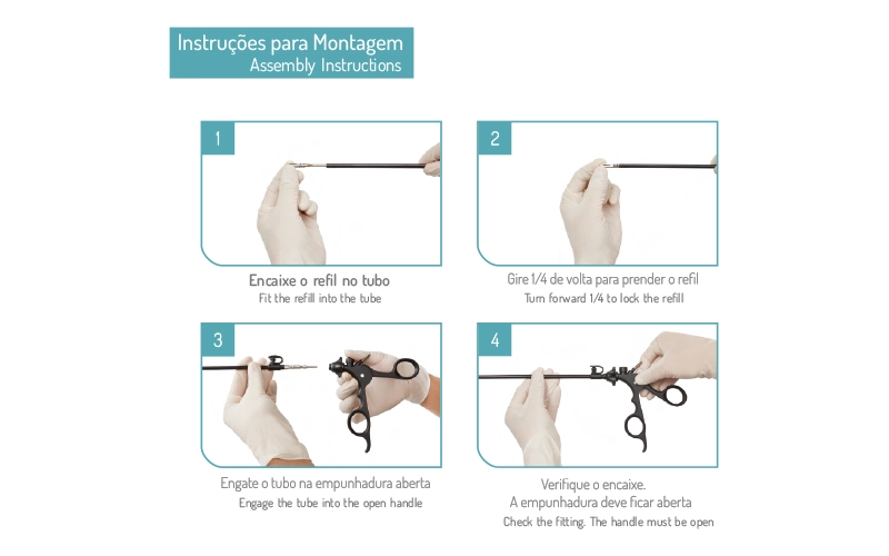 O modelo modular permite a substituição apenas da parte ativa, reduzindo custos com manutenção e aumentando a vida útil dos instrumentos. A montagem é feita em segundos, com travamento seguro e intuitivo, minimizando erros e acelerando o preparo cirúrgico.