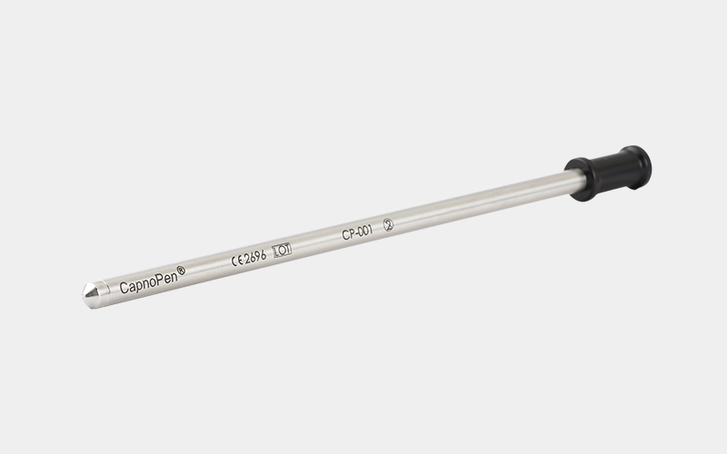 O CapnoPen utiliza 100% aço inoxidável em sua construção, garantindo durabilidade e compatibilidade biológica.